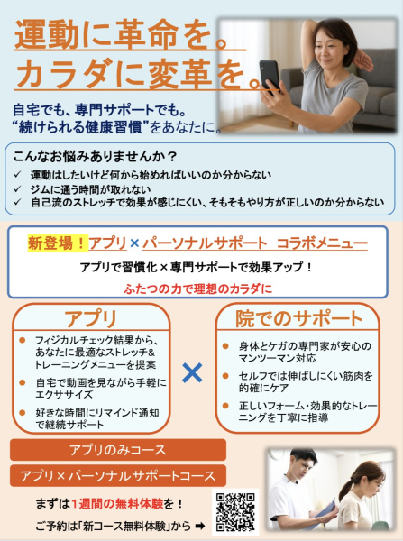 新メニューの「リハサク」とはスマホにより、運動やストレッチなどを送り、自宅で運動が行えるアプリとなっています。